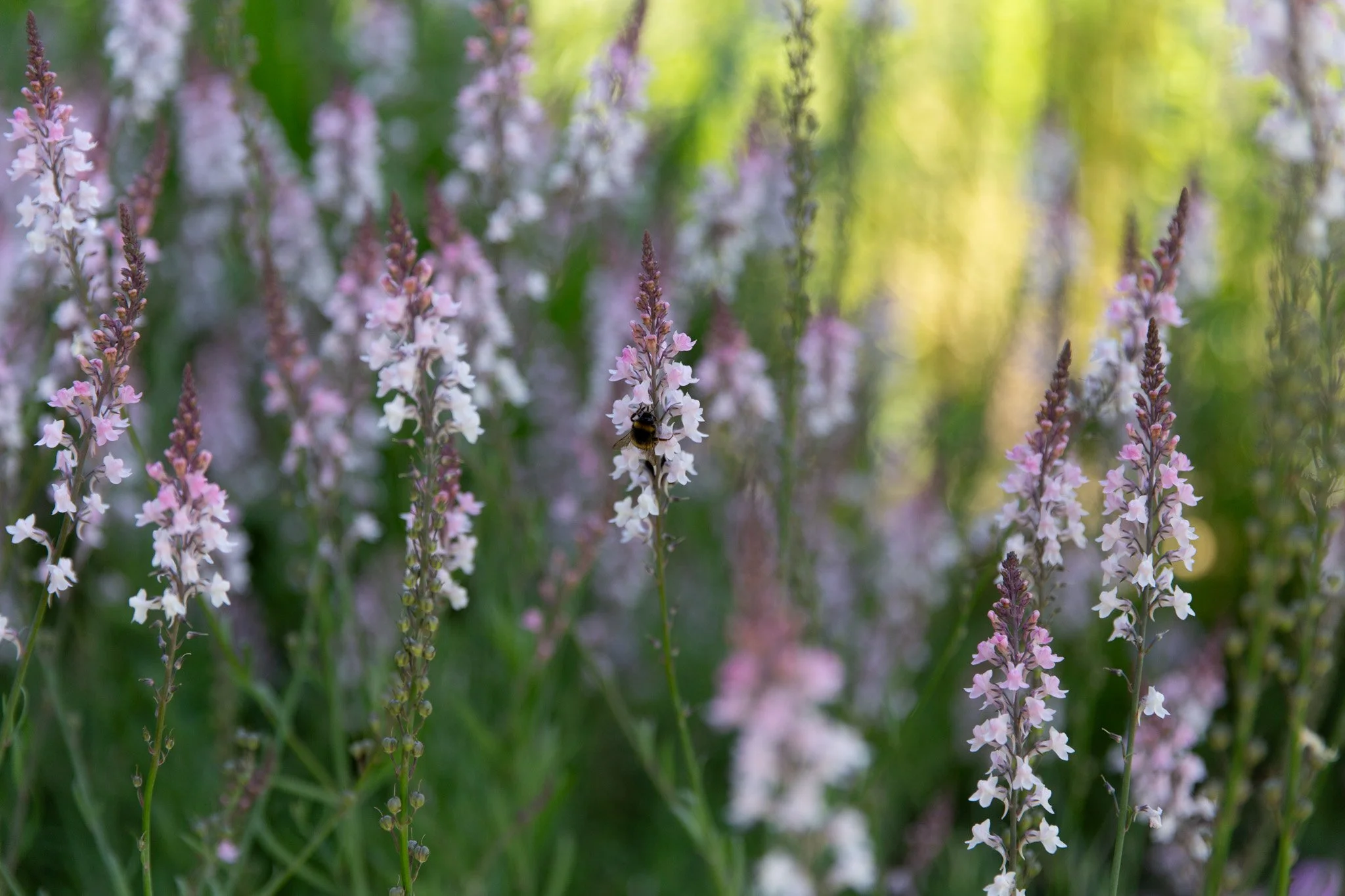 Linaria purpurea βCanon Wentβ is an especially elegant variety, with pinky-white flowers and is our favourite to grow.